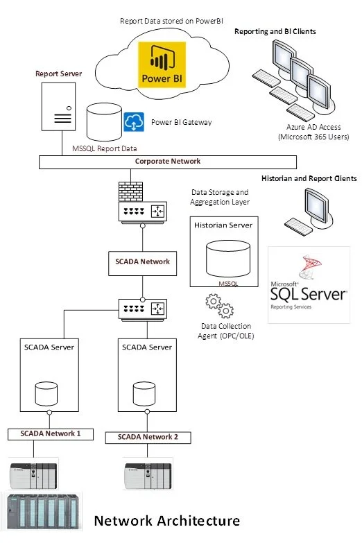 To collect plant SCADA trends and store over 10 years of history with archiving on older data as well as to provide summary reports on multiple areas including daily production volumes, water quality, maintenance as well as ad hoc trend extracts for a fixed interval with multiple trends in a pivot table.