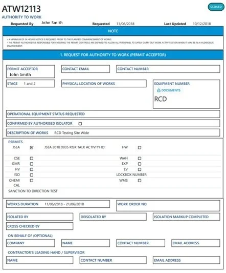 Convert the paperwork for ATW (Authority To Work), JSEA, Work Permits and Isolations to electronic format and manage Approval Workflows.