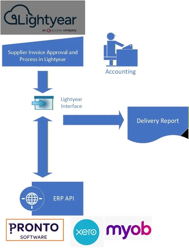 After consulting with LightYear, we formed a partnership to handle the interface between their software and various ERPs. We now have a plug-in solution to link Lightyear to various ERP systems (Pronto, XERO, MYOB and others).