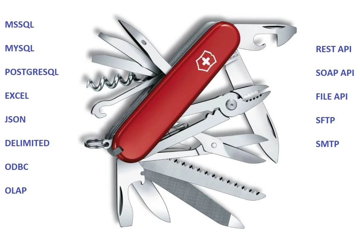 No-Code Universal ETL (Extract Transform Load) allowing configuration of all common data types including Databases, API, File Data Types.